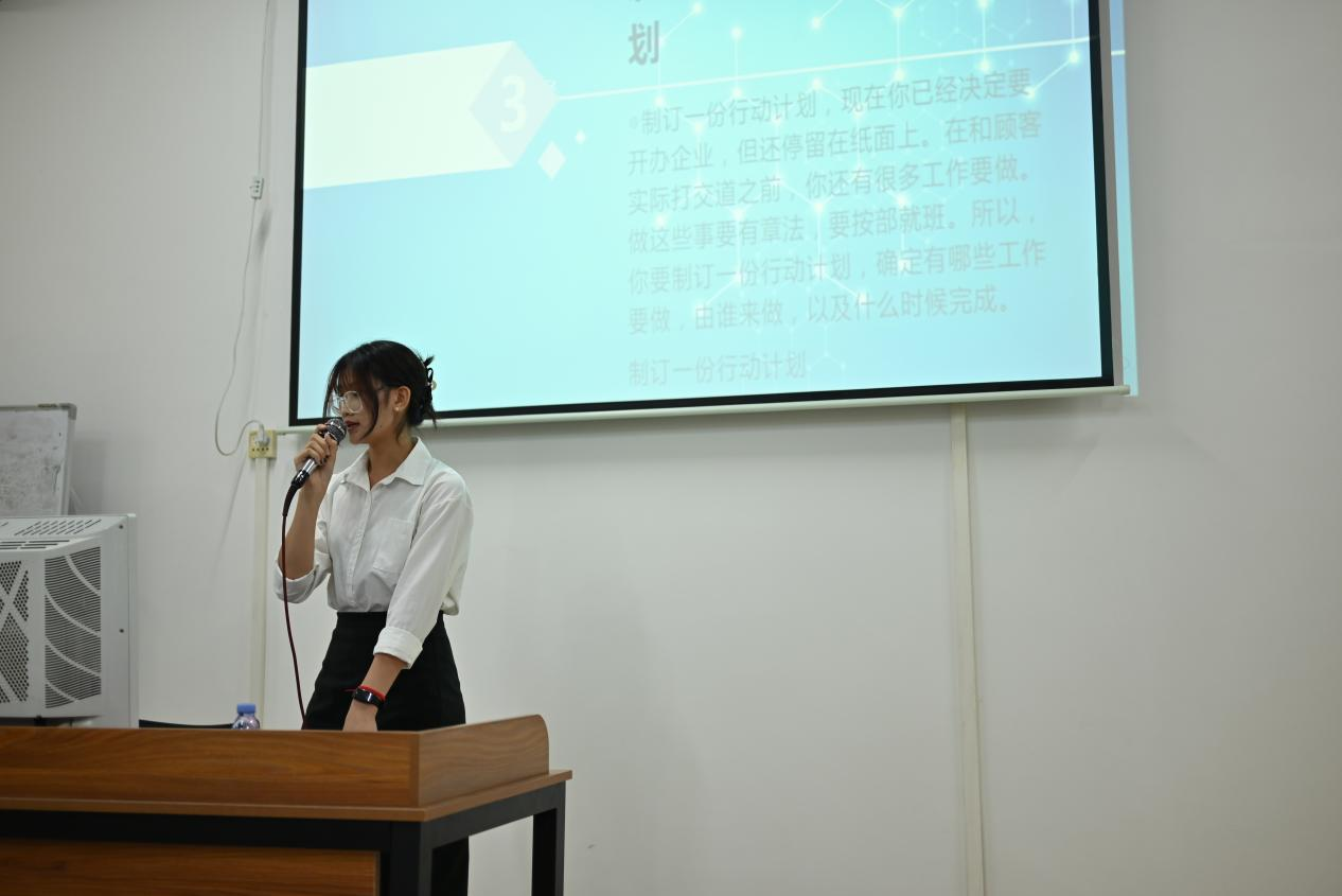 第五讲任雅筠讲师的“评估市场及人员管理”,成功的为有创业志向的同学分析现有的创业环境和创业难易度,在管理人员方面介绍了相关方法及案例,并详细为同学们进行分析;