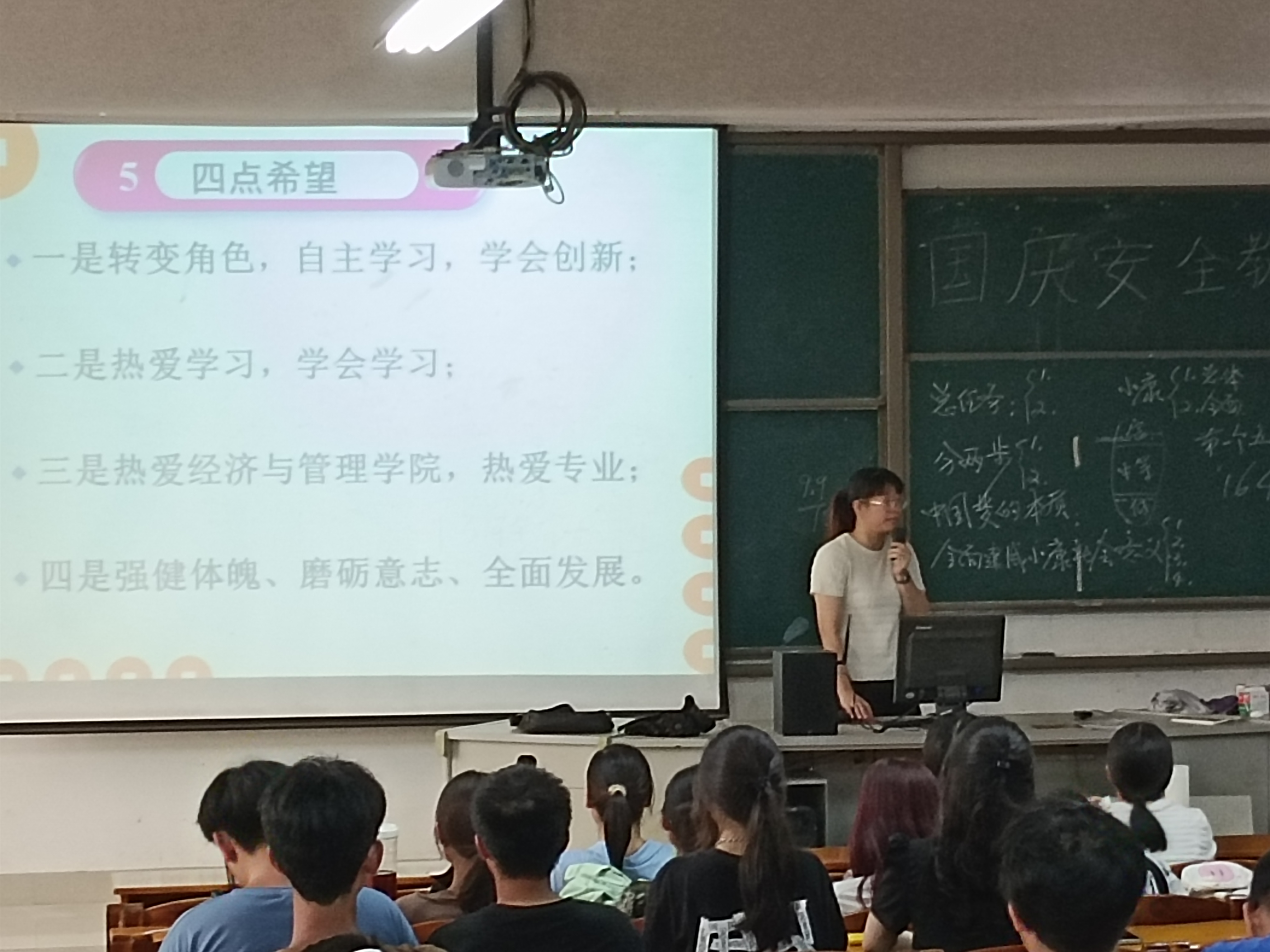 秋风起兮开学忙,青衿之志,履践致远。又是一年九月丰收节,广东文理职业学院迎来了朝气蓬勃的2023级新生。为做好教学工作,引导新生规划自己的人生路,2023年9月27日下午三点,我院在第一教学楼召开2023级新生专业介绍大会。经济与管理学院院长幸理教授、副院长白福臣教授出席本次会议,各专业的介绍内容由各专业负责老师讲解。
