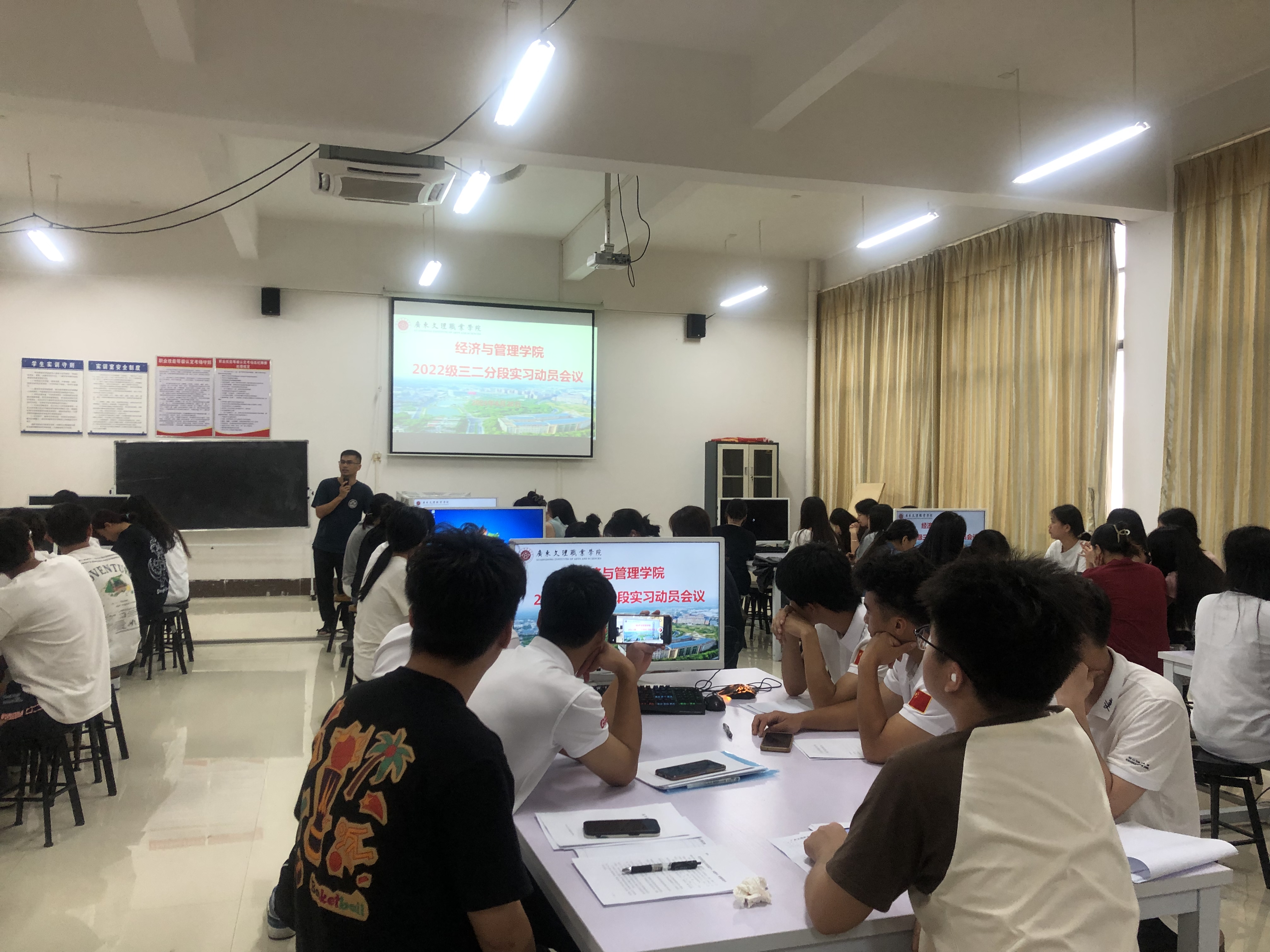 在实习动员大会上,廖明孚老师为大数据与会计、电子商务两个专业的学生详细讲解了实习的要点和注意事项。他强调,实习是学生们将所学理论知识应用于实践、提升职业技能的重要机会,也是为将来步入社会、走上工作岗位做好准备的关键一步。他鼓励学生们在实习期间要积极主动、勤奋好学,争取在实习单位留下良好的印象,为未来的职业发展打下坚实的基础。