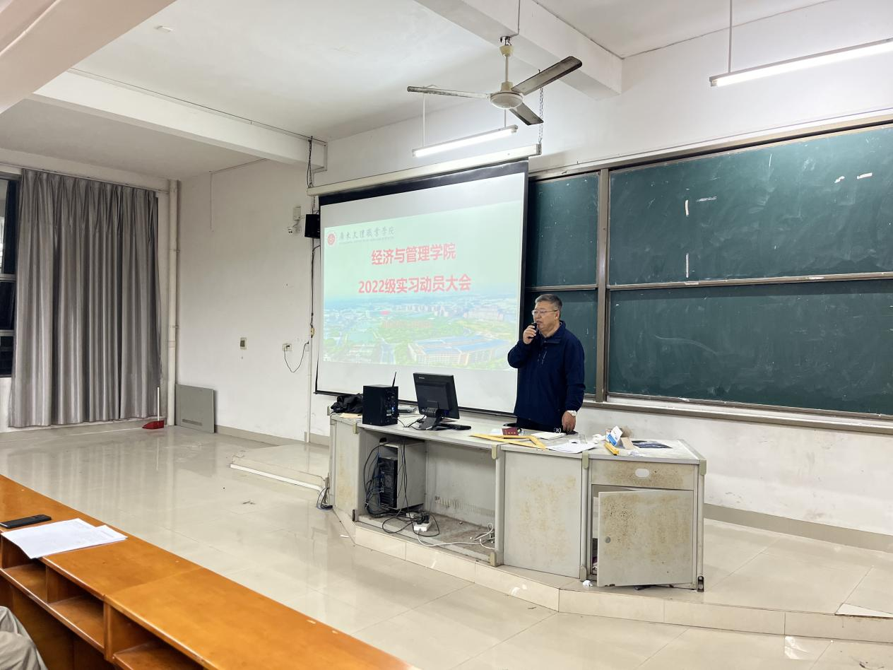 知识如灯,照亮前行之路;实践如履,踏实每一步。又是我校学子的实习季,我院的大三学生们即将踏上社会的征途,迎接他们为期半年的实习任务。2024年12月5日晚上八点,我院在第一教学楼的A204、A303和A305教室举行实习动员大会,为学生们即将展开的实习生涯提供指导和解答疑惑。经济与管理学院的院长幸理以及副院长白福臣亲临现场,与我院全体师生欢聚一堂,为即将启程实习的学生们送上祝福与鼓励。