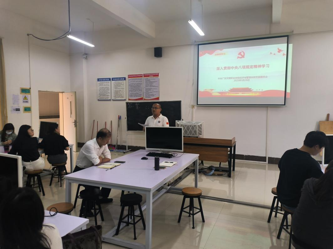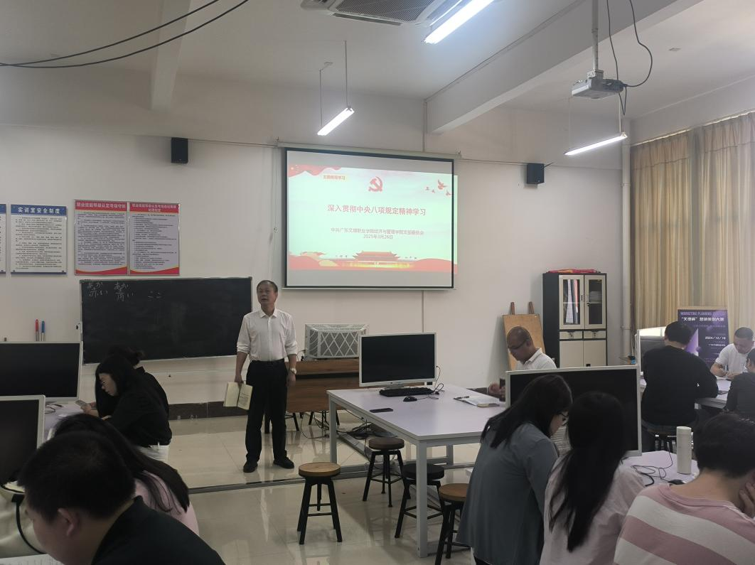 为切实把两会工作落到实处,深入贯彻党中央八项规定;2025年3月26日下午15:00,我院在科技大楼A516召开中共中央八项规定的政治学习与传达会议;会议由经济与管理学院幸理院长主持,学生处刘平副处长,经济与管理学院全体教师及辅导员共同参与本次会议,共同探讨学院发展与学生培养工作。