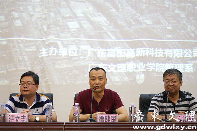 最后由富田高新科技有限公司的董事长谭健国先生讲话,他肯定了我院学生的努力,他认为态度是很重要的,希望同学们永远都抱着学习的态度。同时他也希望能够再有机会到我院学习,丰富自己的文化。(文/陈碧丹 图/李梓坚 编辑/钟文 审核/刘培林)