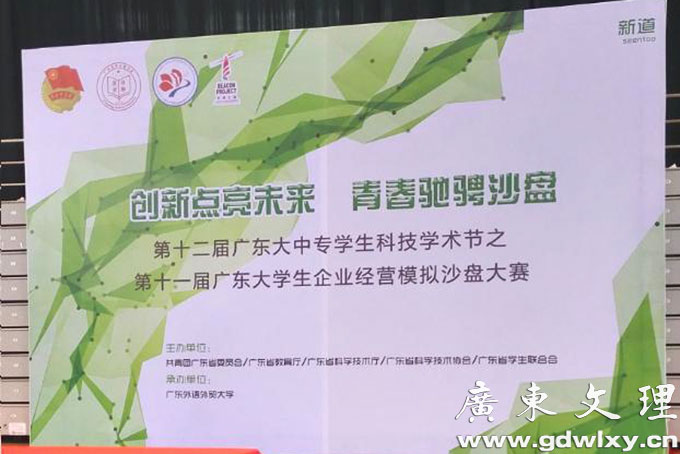 广东文理职业学院首次派出代表队参加了2018年5月19日至5月20日在广州市大学城、广东外语外贸大学南校区体育馆举行的由共青团广东团省委、省教育厅、省科技厅、省科协、省学联等单位组织的 “第十二届广东省大中专学生科技学术节新道杯企业经营模拟沙盘大赛”。