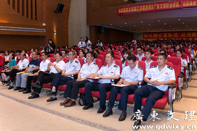 5月16日晚,廉江市税务局和广东文理职业学院共同举办的“减税降费”宣传策划创意大赛决赛活动,在学院科技大楼十楼学术报告厅举行。广东文理职业学院党委委员、副院长郝世栋教授,廉江市税务局党委书记、局长钟杰,创新创业学院院长、教务处常务副处长苏鸿平,学生处副处长刘平及财经系主任林荣科、财经系会计教研室王主任琴、廉江市税务局的领导嘉宾及学生代表400多人出席了活动。郝世栋教授代表学院讲话。