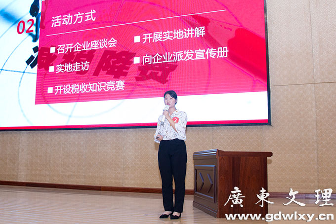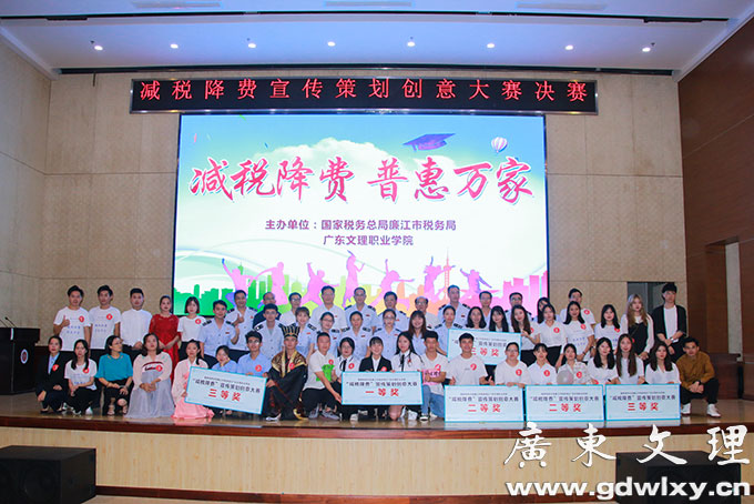 “减税降费”宣传策划创意大赛决赛活动是根据国家税务总局关于,以“落实减税降费,促进经济高质量发展”为主题,在2019年4月1日至5月20日期间集中开展第28个全国税收宣传月活动的部署而进行的。减税降费,国之要政,牵一发而动全身。为了让学生了解、熟悉“减税降费”优惠政策,深植税法意识,同时成为政策的宣传者、传播者,廉江市税务局与广东文理职业学院携手共同举办“减税降费”宣传策划创意大赛,目的是分充发掘学生聪明才智,为“减税降费”宣传出谋划策,成为税收宣传自愿者,共同为国家和社会发展助力。(文/王 琴 林明丽 图/梁伟涛 编辑/钟文 审核/李贵龙)