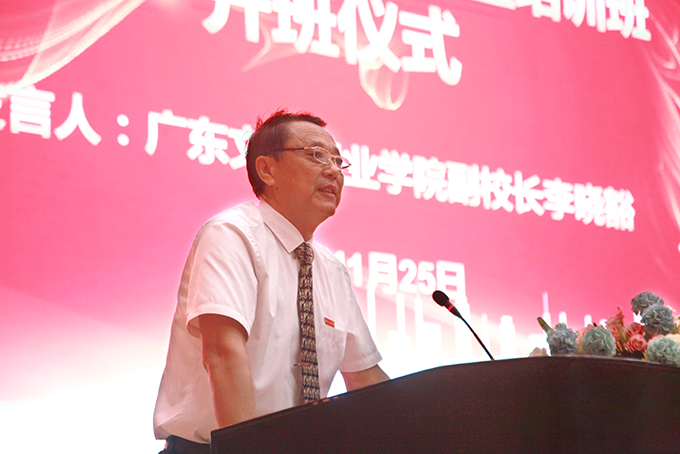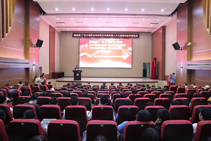 11月25日下午,碧桂园-广东文理职业学院第二届“岭南红橙杯”营销创意大赛暨校企共建电商人才培训班开班仪式在我校学术报告厅举行。碧桂园国华文旅运营经理雄奥,东莞市百达连新电子商务有限公司总经理陈寿杰,广东文理职业学院校长郝世栋、副校长李晓豁,教务处处长苏斌,实训中心副主任王达斌,管理系主任幸理以及部分师生代表参加。