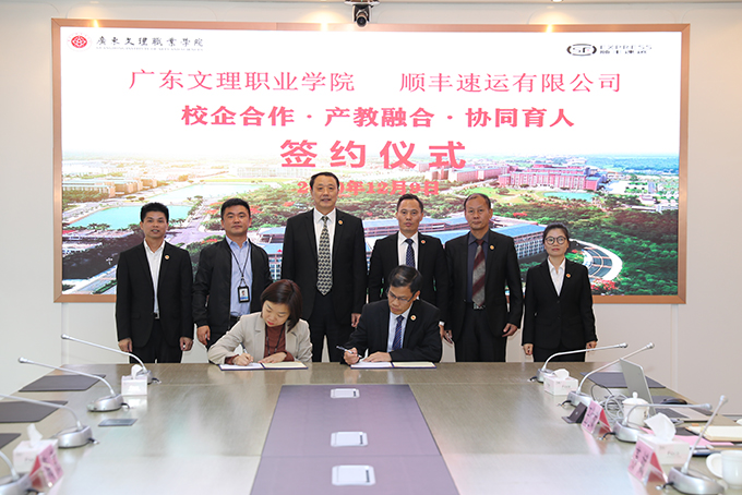 2020年12月9日,广东文理职业学院与顺丰速运有限公司举行深化产教融合洽谈会暨战略合作协议签约仪式。广东文理职业学院副校长李晓豁,顺丰速运粤西片区负责人胡金凤、陶武,及我校相关部门负责人出席了签约仪式。