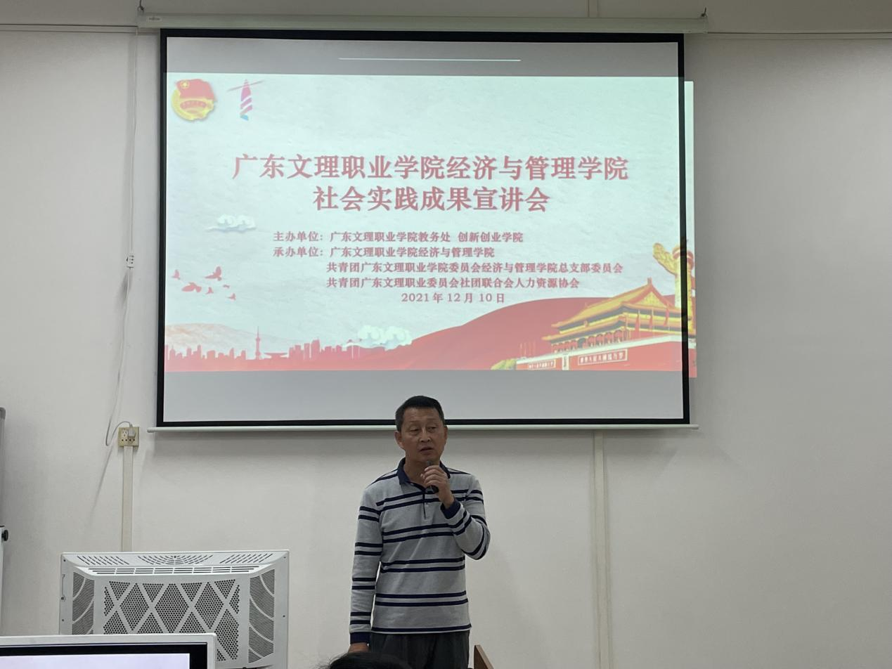 为了经济与管理学院的学生能在实践中展现自我、增长技能,在广东文理职业学院教务处的大力支持下,由广东文理职业学院创新创业学院、教务处主办,经济与管理学院、经济与管理学院团总支、人力资源协会承办的2021年经济与管理学院大学生社会实践成果宣讲会于2021年12月10日晚19时如期举行。经济与管理学院人力资源管理专业带头人钟凯老师、经济与管理学院庞浩然老师、经济与管理学院沈瑞麟老师莅临指导,19、20级人力资源管理专业全体同学参加。