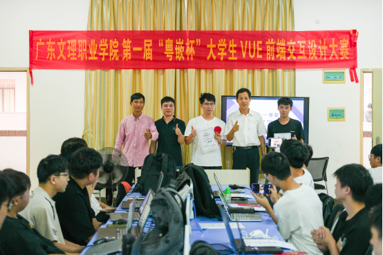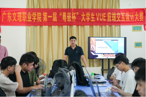 2024年10月25日下午,广东文理职业学院首届“粤嵌杯”大学生VUE前端交互设计大赛决赛,在科技实训楼A401实训室举行。