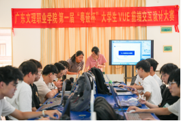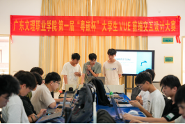 经过为时一个多月的培训,10月25日下午,广东文理职业学院首届“粤嵌杯”大学生VUE前端交互设计大赛决赛,在科技实训楼A401实训室正式拉开帷幕。