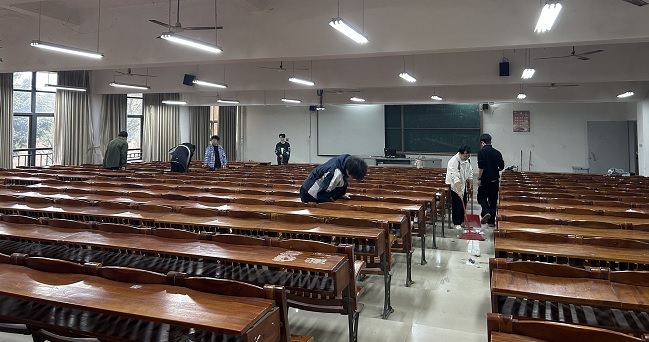 在整个打扫过程中,同学们热情高涨,不怕脏、不怕累,充分展现了当代大学生良好的精神风貌。大家相互协作,有的负责清理垃圾,有的负责搬运物品,每个环节都衔接得有条不紊。经过近两个小时的辛勤劳动,原本杂乱无章的教室焕然一新,桌椅摆放整齐,地面干净整洁,黑板光亮如新,为新学期的学习生活创造了温馨舒适的环境。