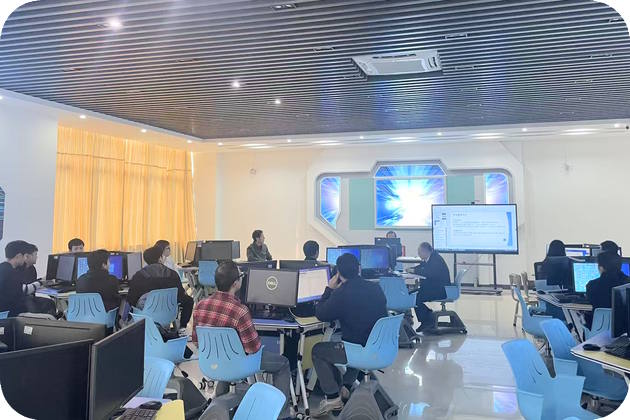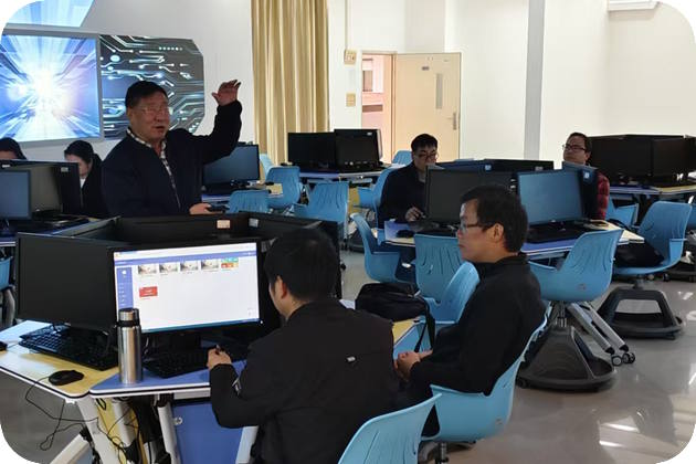 在两位教研室主任发言完毕后,会议的最后环节,是关于在“学习通”平台上建课的座谈。铁院长介绍了自己在“学习通”平台上建设的各门课程,展示了上学期教授的“Python程序设计”和“网络安全技术”在“学习通”平台上建设的课件、教学文档、章节、实验指导书、布置和批改的作业、练习题题库以及在线考试等内容。通过现场演示,铁院长号召大家在“学习通”平台上将自己主讲的课程进行建设,完成我院主干课的在线建课任务。
