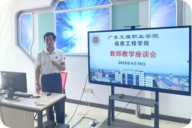 本学期初,学校发布了《广东文理职业学院2024-2025学年第二学期党政工作要点》的文件,其中第三条提到了要继续推进教学基本建设,开展有组织的教研活动,提升教师教学核心能力;以及第六条提到了要狠抓学风建设、落实立德树人。为此,信息工程学院制定了相关的方案和措施以落实学校的要求和精神,包括:每两周召开一次教学工作会议,不定期的进行随堂听课和教学检查,每学期至少召开一次教师教学座谈会和学生座谈会,收集和教学相关的信息,对存在问题的环节及时进行教学整改,对违反师德师风及教学规章制度的现象零容忍。