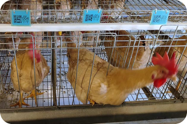 走进“祖代鸡”鸡舍参观,先要进行规范化的更衣和消毒。踏入室内,现代化鸡栏整齐排列,每个鸡栏都挂有一个标牌。鸡舍负责人告诉我们,“这是我们的祖代鸡,全部都采用单体笼逐只选育。借助于先进的数字化技术,为每只鸡设置了唯一的二维码,用设备扫码即可获取这只鸡的相关信息。”同时技术人员现场扫码示范给大家看。