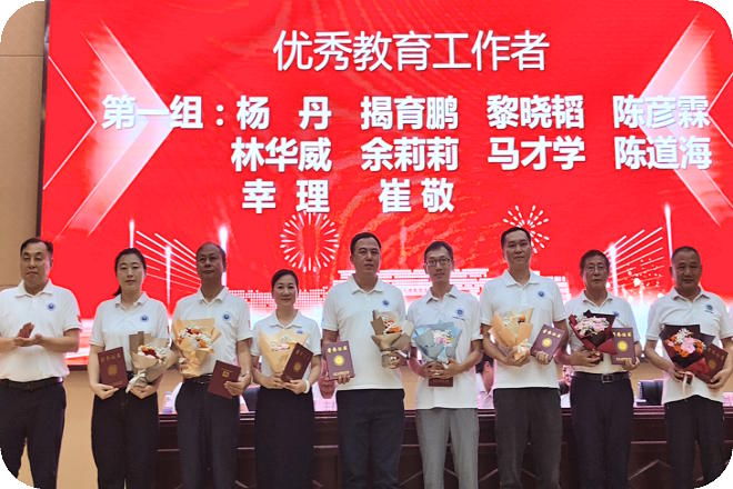 2025年9月10日,我校在科技实训楼10楼学术报告厅隆重举行了庆祝第41个教师节表彰大会暨师德建设主题教育月动员大会。在随后进行的表彰环节中,大会表彰了南粤优秀教师、2025年度广东民办学校优秀教师、校级优秀教师、校级优秀教育工作者、省级荣誉教师代表、2024年师德先进个人、十年以上校龄教职工等,充分体现了学校对教师队伍的高度重视和肯定。我院马院长以及龙镇伟等老师受到各种级别的表彰和奖励。