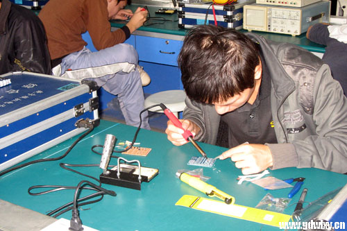 据评委老师们介绍,比赛内容主要由两部分组成:一是对给定的元器件,识别、检测其各项参数,并填写检测结果;二是对直插封装的元器件,按电子工艺要求剪裁引脚、安装、焊接到万能板上;对贴片元件按电子工艺要求,焊接到给定的线路板上。