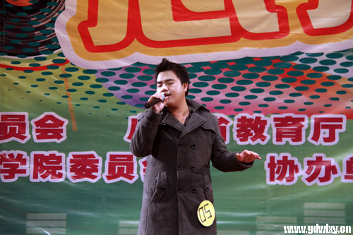 在十大歌手比赛的舞台上,经过激烈的角逐,我系11级表演艺术专业的彭乙桓同学晋级专业组总决赛,并获得专业组第四名(三等奖)的优秀成绩。