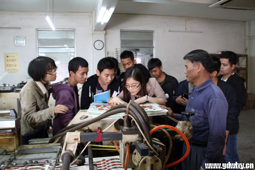 公司生产部主任黄成国对我系师生的到来表示热烈欢迎,引导大家参观实训基地,并就印刷基本操作流程、生产工艺、印刷材料,以及印刷过程中的细节处理给同学们进行了详细讲解。
