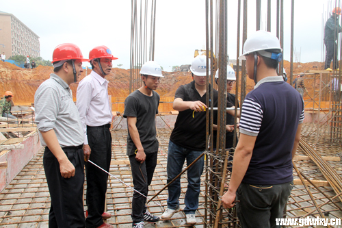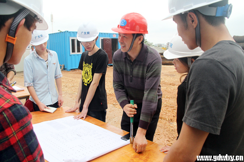 学院副院长、基建工程指挥部总指挥涂习贤给同学们讲解图纸