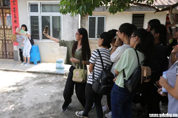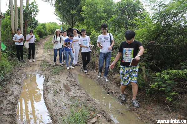 热浪直往同学们身上扑,可是同学们却顶烈日在村头进行采访。