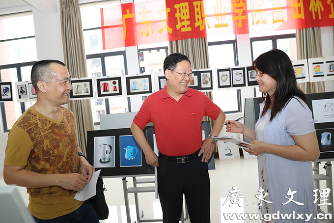 学院教务处长郝世栋教授,科研处长巩育军教授,艺术传媒系主任邓天杰教授,副主任侯石明副教授,湛江市富田电器有限公司谭健国董事长、汪文志总经理等,一起在画室详细参观了360多幅展出产品外观作品以及20余本企业形象(VI)手册。这些作品以电热水壶为表现主题,围绕市场变化和客户需求,科学设计,大胆想象,丰富创意理念,提升美学内涵,改变陈旧外观,灵动的造型美不胜收:有的像花瓶,有的如宝塔,有的似蜗牛,有的比兽头,既实用又美观,表现出广东文理职业学院艺术传媒系师生精湛的专业素质和良好的艺术修养。据了解,这项活动已开展半年有余,艺术传媒系艺术设计专业师生大多积极参与,他们主动到工厂车间参观,听取技师和工人师傅讲解,回来后在指导老师的帮助下,调动全部创作热情和设计灵感,几度布局,几易其稿,集思广益,精益求精,终于圆满完成这些设计作品。
