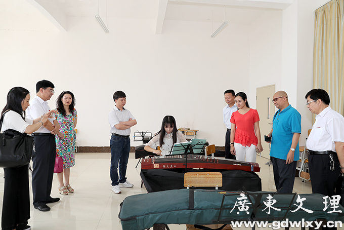 专家组一行在学院常务副院长李润教授、副院长汪富泉教授的陪同下深入到古筝实训室、架子鼓实训室、舞蹈房和钢琴房指导、观赏了学生的表演。