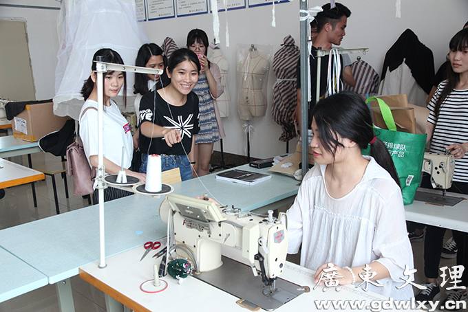 采访之余,驻站记者体验服装专业同学的辛苦。