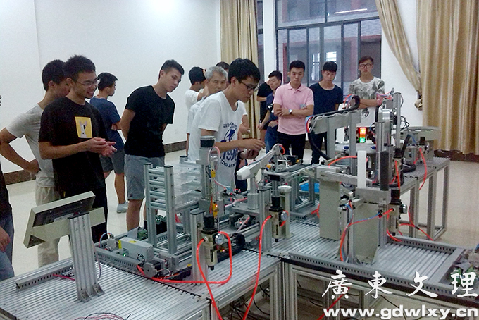 驻站记者在柔性自动化实验室现场抓拍学生进行实验的新闻图片。