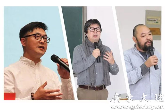 漫画家单伟、人民日报《讽刺与幽默》执行主编肖承森、广东文理职业学院侯石明在讲座