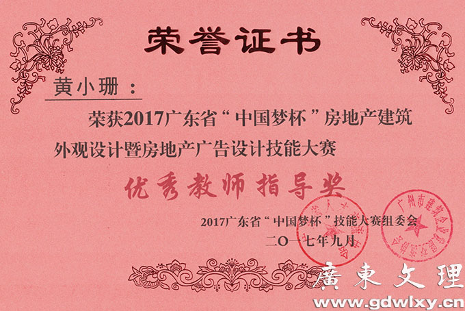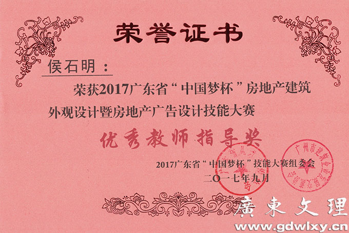 2017广东省“中国梦杯”房地产广告设计、房地产建筑外观设计技能大赛我校喜获佳绩