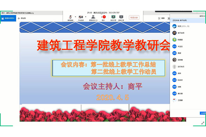 为了继续顺利开展线上教学工作,4月5日上午,建筑学院利用腾讯会议软件织召开了第一批线上教学工作总结会议,建筑学院全体教师参加,会议由商平院长主持。