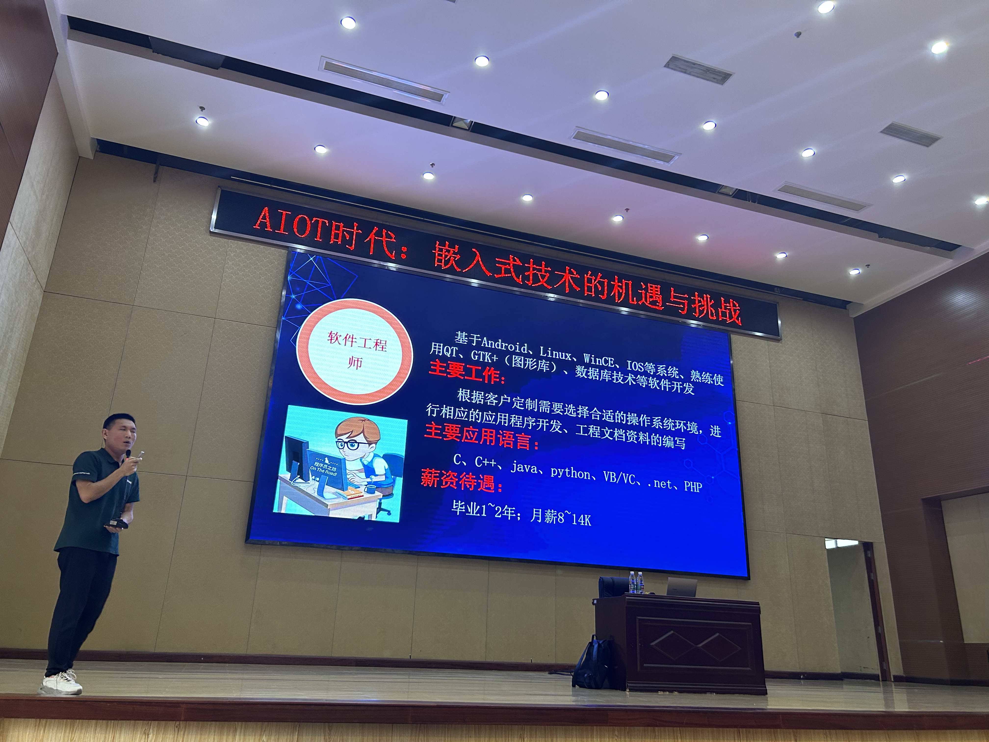 为了让学生更加深入地了解企业技术需求、开阔视野,2023年5月12日下午,我院邀请深圳信盈达科技有限公司校企合作负责人喻时坤来校开展了《AIOT时代,嵌入式技术的机遇与挑战》讲座。我院部分教师、21、22级电子信息类和自动化类专业的300多名学生参加了讲座。