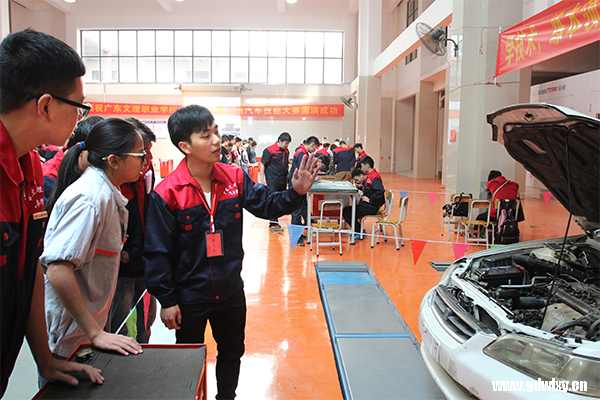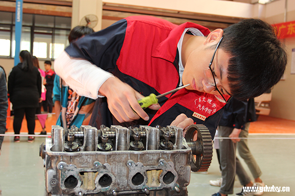 12月10日上午,广东文理职业学院汽车学院第三届汽车技能大赛于学院实训中心正式拉开序幕。本次共300多名学生参赛。比赛以更换轮胎、安装汽车照明系统、拆卸发动机为主要内容,主要考察学生对汽车各零部件更换、安装及拆卸的熟练程度、同学们分工合作、拆装工具零件的摆放、工具归位等全方位能力。