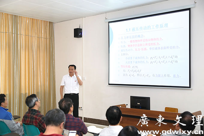 课堂上,李教授声情并茂,运用多媒体教学,生动地讲授了《液压与气动技术》中液压传动部分这一内容。从授课的全过程看,李教授的PPT制作简洁精美、重点突出,内容清晰,并根据教学内容采用恰当的教授方式,通过对PPT的制作考究,将知识点有效的在PPT展示,动静结合,将通过对知识点的分解讲解再到运动动图整合知识点,使听课过程的知识由易到难逐步深入。通过讲授,引导学生思考,充分发挥了课堂的延展性。