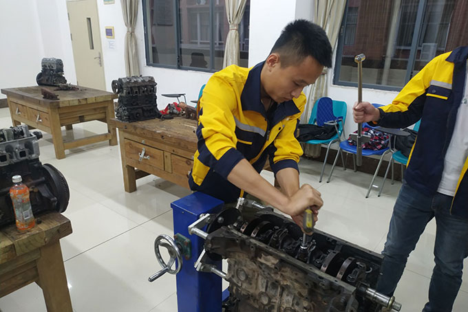 汽车学院17汽修1班厉兵秣马 备战第五届汽车技能大赛