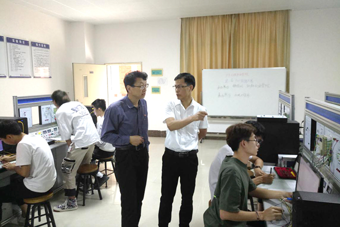 2020年11月20日上午, 由教务处、创新创业学院主办,机电工程系承办的第一届PLC技能大赛在科技大楼A613举行。教务处处长苏斌、科研处处长巩育军、建筑工程学院院长商平、机电系主任陈志军、机电系副主任周桂英到大赛现场观赛。