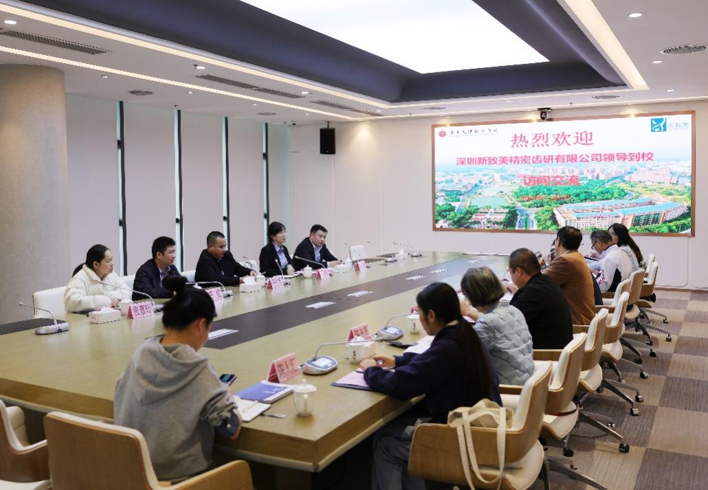 202415日下午, 广东文理职业学院和新致美齿科集团深圳新致美精密齿研有限公司校企合作签约仪式在广东文理职业学院图书馆七楼视频会议室隆重举行。会议由李晓豁副校长主持,李晓豁副校长和陈虹百总经理代表校企双方签定了校企合作协议。签约仪式后,校企双方就人才联合培养、实训室建设、学生实习、校企合作等议题进行了深入地交流。学校党政办副主任揭育鹏、实训中心主任王达斌、生物与健康学院院长陈道海、生物与健康学院主任陈光英、教师代表肖秋丽、颜凯旋和陈人汇,新致美齿科集团深圳新致美精密齿研有限公司总经理陈虹百及技术总监王丽霞、苏威等集团负责人出席了签约仪式和座谈会。