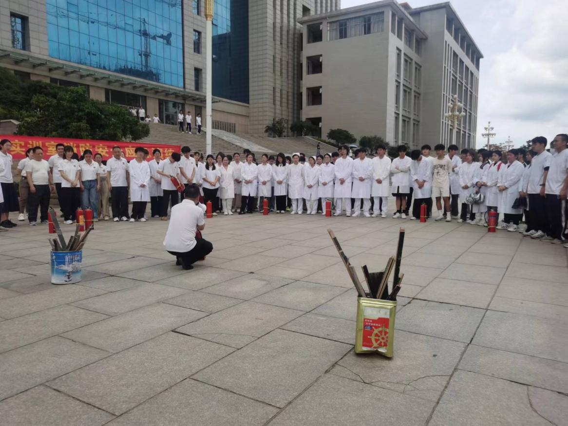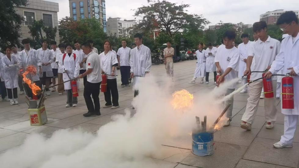 为了贯彻执行教育部《高等学校实验室安全规范》(教科信厅函〔2023〕5号)文件精神,提高师生对实训室火灾事件的警惕性与应急处理能力,生物与医药学院和健康学院联合组织中药学等7个专业100余名师生进行实训室消防安全应急演练,演练的主要内容有:火场疏散与逃生、急救技术培训和灭火操作技能培训等,整个演练持续1小时30分钟。