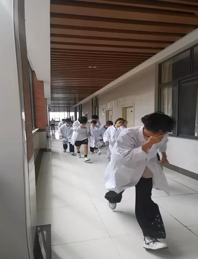 生物与医药学院-陈道海院长作火灾疏散逃生跑姿演示