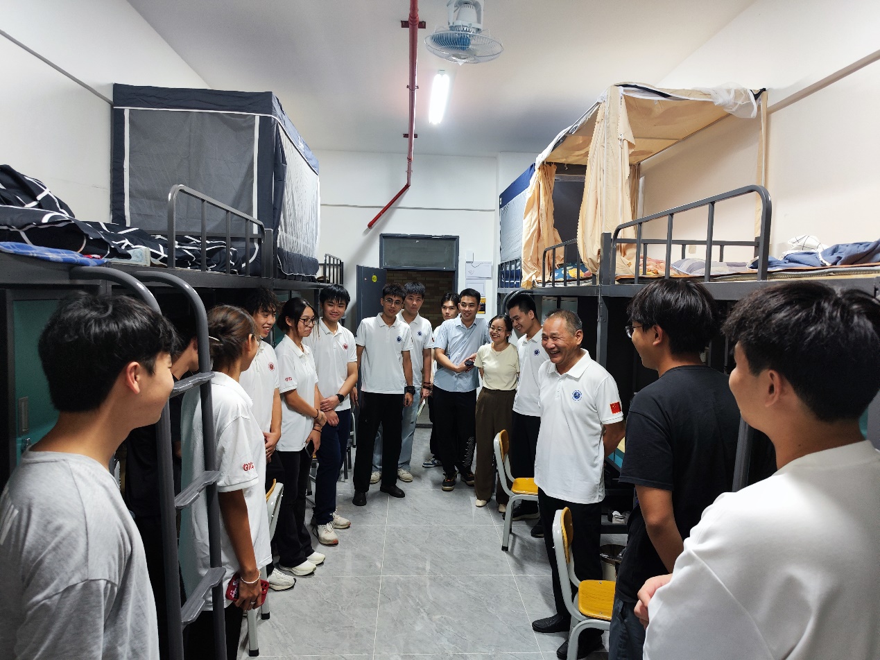 陈院长一行与同学们亲切交谈,详细了解同学们在报到注册、生活日用品配备、饮食、气候环境适应性等方面的情况,听取学生们的意见和建议,解答他们在入学过程中所遇到的各种问题;并表达学校对新同学的关怀与温暖,勉励同学们尽快融入新的环境,适应大学生活,学有所成。走访过程中,陈院长还特别强调了校园安全的重要性。他提醒同学们,初到学校期间,要保持警觉,注意个人财物和人身安全。
