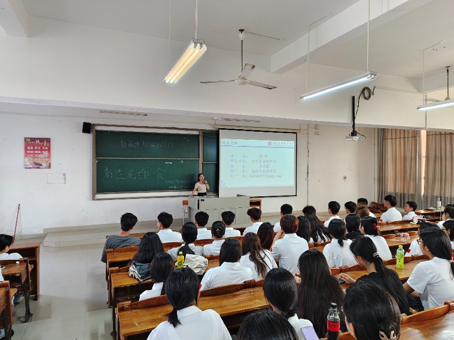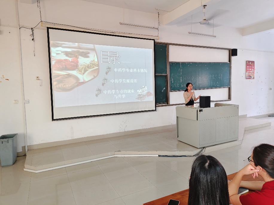 覃舒然老师为新生详细介绍了中药学专业。覃老师从中药的历史渊源讲起,深入浅出地解释了中药学与现代医学的结合点,强调了该学科在疾病预防、治疗以及康复中的重要作用。她鼓励新生们用科学的态度探索古老的中药文化,传承并创新中医药的精髓。