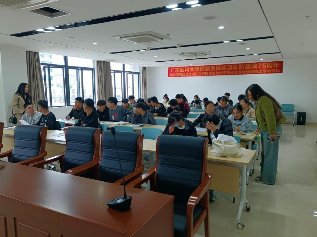 陈道海院长一行来到遂溪县人民医院时,医院科教科占美莲科长和王洁文老师正在召开集我校实习生见面会,向实习生详细介绍实习计划与要求
