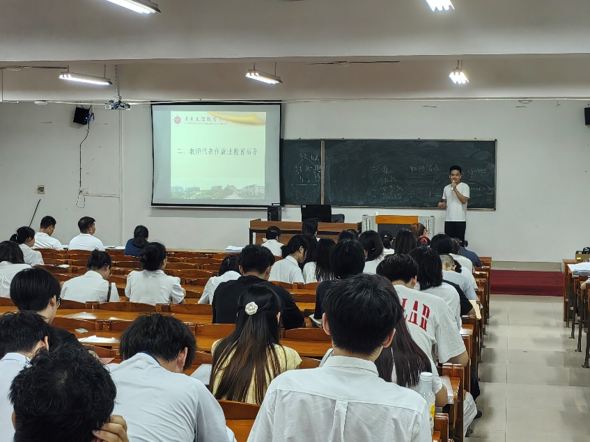 为全面总结实习经验、提升实践教学质量,2025年7月19日晚上7点,生物与医药学院在广东文理职业学院第一教学楼A304教室,成功召开了中药学专业实习总结大会。本次大会由陈道海院长指导,覃舒然主任主持,其它出席大会其它人员包括黄锦洲老师、徐晓燕老师、林结玲老师、李金梅老师、辅导员罗诗婷老师以及中药学专业学生153人。