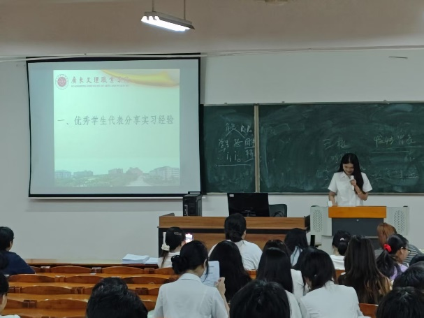 会上,优秀实习生代表李英桃同学进行了精彩的个人实习总结与经验分享。她结合自身实习经历,讲述了在实习过程中的收获与成长,也提出了面对挑战时的思考与应对方法,赢得了现场师生的热烈掌声。