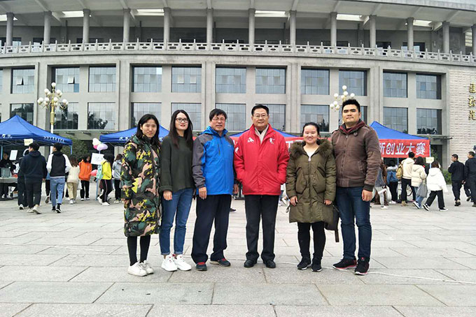 领导和老师在产品现场展示与销售比赛现场合影留念