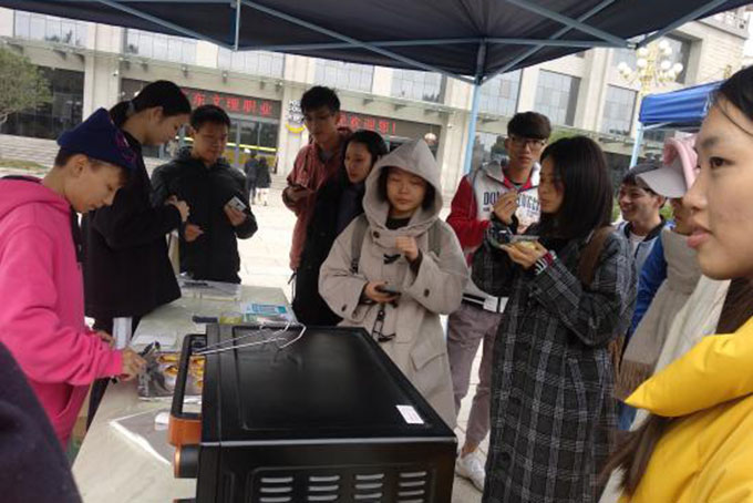 比赛分三轮进行:第一轮为产品策划方案汇报;第二轮为产品推文宣传;第三轮为产品现场展示与销售。其中,产品现场展示与销售是比赛的重点。赛场各个摊位上摆满了各参赛团队的产品。色彩鲜艳的水果布丁、美味香甜的水果茶、有趣的叶脉书签、仙气飘飘的古风饰品、高端新颖的3D打印产品等一系列展品吸引了许多师生观看和购买。