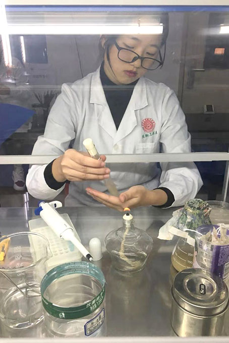 参赛选手刘雯菁同学正在做样品梯度稀释