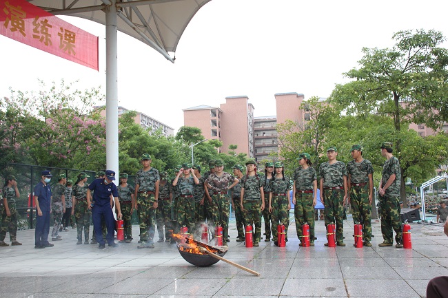 讲座结束后,市消防大队的官兵们现场演示了灭火器的使用方法和油盆灭火的示范教学,部分学生现场参与了灭火操作体验。教会师生们要按规定配置消防器材,掌握一定的消防自救知识,面对不同的火势,要以正确的方法使用灭火器进行灭火。