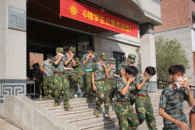 为了实施好这次演练,学院制定了详细的消防疏散演练方案,对各专业和班级逃离的路线及每位辅导员和教官的职责、每层楼梯间的值班人员等内容都作了明确的规定。演练开始前,消防员向学生介绍了详细的逃生注意事项和方法。下午17时,随着警报的响起,学校应急疏散演练指挥部指挥下达了“宿舍楼发生火灾,请同学们立即撤离”的命令,其他老师们也在第一时间赶到各自的职责岗位上配合疏散学生。各班学生在老师们的指挥下,弯着腰,猫着步,用手帕、毛巾等捂住口鼻,沿着学校指定楼梯口快熟快速前进,有序撤离到学校篮球场的安全地带,并清点人数,层层上报,撤离学生全部安全疏散完毕。