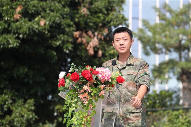 军训教官代表黄尚鑫同志发言,表示一切从自身做起,以良好的军人形象带领大家,以过硬的军事素质引导大家,认真履行一名教官应尽的职责,以身作则,以抓出成效作为军训的根本,严格按照军训计划,科学施训、灵活组训、文明军训,高标准、严要求来完成此次军训工作任务。